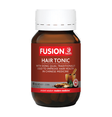 Fusion Hair Tonic includes: Biota, traditionally used to decrease hair loss and improve hair growth in traditional Chinese medicine (TCM) Biota is also traditionally used to help maintain healthy hair follicles and to relieve scalp irritation by cooling blood heat in TCM An increased dose of dong quai, which is traditionally used as a blood tonic that improves hair health in TCM Plus the traditional Chinese herbs rehmannia root, white peony, Chinese licorice, cuscuta and Szechuan lovage