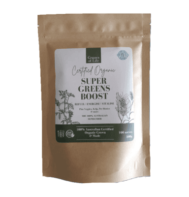 Certified Organic Daily Greens Boost is a Unique Blend of Certified Organic Power Foods Ideal for High Speed Lives. Grasses are Natural source of B Group Vitamins, which are essential for energy and performance. We have also included Kelp, which is a rich Source of Iodine.